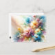 "Serene Petals" is a captivating watercolor postcard that transports you to a tranquil garden bathed in sunlight. This artwork skillfully combines delicate and vibrant shades of pink, blue, yellow, and green, creating a soft, flowing vision of blooming flowers. The play of light and shadow across the petals and leaves adds depth, while the ethereal, dreamlike quality of the watercolor technique evokes a sense of peace and natural beauty. Perfect for art lovers and collectors, this postcard is a gentle reminder of the serene moments nature offers us.