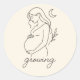Celebrate the miracle of motherhood with this elegant continuous line pregnancy sticker. Features a serene expectant mother in profile, gracefully holding her belly with flowing hair and subtle crescent moon accents. Crafted in varying line weights (2-4pt) for visual depth, this minimalist design blends 2025 trends with timeless appeal. Perfect for baby shower favours, pregnancy journals, or nursery decor. The transparent background and 3:4 aspect ratio make it ideal for laptops, water bottles, or keepsake boxes. Includes optional 'Growing' script text for added emotional resonance.