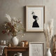This evocative black and white portrait presents a figure in serene contemplation, captured in a striking profile. The model's eyes are gracefully closed, emphasising a moment of calm and introspection. Her silhouette is dramatically framed by a sleek black headpiece, from which bare, stylised branches emerge, culminating in a watchful black raven perched atop. Dressed in a sophisticated black turtleneck and adorned with an intricate, textured stud earring, the image embodies a unique blend of high fashion and naturalistic surrealism. The crisp monochrome palette intensifies the contrasts, bringing focus to the delicate details of the facial features, the smooth lines of the garment, and the striking narrative element of the bird. This artwork is a compelling fusion of nature, fashion, and quiet drama, perfect for art collectors and design enthusiasts.
