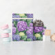 This wrapping paper features a vibrant floral pattern of lush hydrangea flowers in shades of purple, blue, and yellow, set against green foliage. The design is densely packed with overlapping clusters, creating a seamless and continuous flow that evokes the tranquility of a blooming garden. Rendered in a digital illustration style, the artwork captures the natural beauty of hydrangeas with smooth lines and realistic textures, perfect for adding an elegant touch to any gift. Ideal for occasions like birthdays or holidays, this paper brings a serene and sophisticated mood to your celebrations.