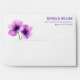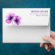 This elegant envelope features a simple yet sophisticated design with two vibrant purple flowers on the left side, rendered in shades of lavender and violet. The clean white background enhances the floral motif, while the right side showcases bold, serif typography for a personalized touch. Perfect for formal occasions, this design exudes serenity and sophistication, making it ideal for invitations or special correspondence.