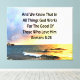 Express your faith, hope, miracles, God's love and blessings with this beautiful ocean with the inspiring scripture verse Romans 8:28 on Home Decor and Gifts. God works for the good in those who love Him. This lovely Romans 8:28 design will make a cherished gift when blessing that someone special that loves Jesus and reading the bible. This inspiring Romans 8:28 scripture verse design will look lovely decorating your home. Share with all that Jesus Christ is the Lord of your heart and the keeper of your soul. Enjoy this beautiful sunrise ocean photo that is peaceful, spirit filled, and serene. What a beautiful way to share the love of Jesus Christ.