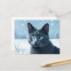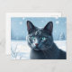 Serene Russian Blue Cat in a Tranquil Snowy Winter Postcard