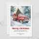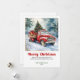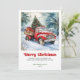 Bring the heartwarming magic of the holidays to every mailbox with this charming Christmas greeting card featuring a watercolor red truck Christmas scene in a cozy rustic style. Inspired by classic holiday nostalgia, this design blends soft watercolor textures, a vintage red truck, festive greenery, and a serene seasonal backdrop to create a warm and welcoming atmosphere. The classic red and green color palette paired with bold playful lettering adds a cheerful touch that feels both timeless and modern.