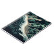 Serene Shores: This stunning top-down illustration captures the harmony of land and sea, featuring waves gently breaking on sandy beaches with lush green mountains in the background. Rendered in soothing shades of dark blue-green, the artwork evokes a sense of tranquility and balance. The intricate detail of the ocean’s patterns meeting the shore, paired with the trees lining the water’s edge, enhances the peaceful atmosphere. Created in a woodcut print style with simple lines and a flat design, the piece is reminiscent of hand-drawn animation, offering a timeless, serene depiction of nature’s beauty.