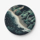 Serene Shores: This stunning top-down illustration captures the harmony of land and sea, featuring waves gently breaking on sandy beaches with lush green mountains in the background. Rendered in soothing shades of dark blue-green, the artwork evokes a sense of tranquility and balance. The intricate detail of the ocean’s patterns meeting the shore, paired with the trees lining the water’s edge, enhances the peaceful atmosphere. Created in a woodcut print style with simple lines and a flat design, the piece is reminiscent of hand-drawn animation, offering a timeless, serene depiction of nature’s beauty.