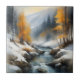 Breathtaking serene beaut winter watercolor painting featuring a crystal-clear river winding through snowy terrain, surrounded by trees. Perfect for art lovers.