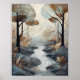 Immerse yourself in the tranquillity of nature with this mesmerising artwork. The gentle flow of the stream through the misty forest creates a serene and peaceful atmosphere. The interplay of earthy tones and delicate foliage adds depth and dimension to this captivating scene. This artwork is perfect for adding a touch of nature-inspired beauty to your home or office.