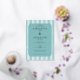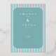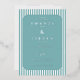 This wedding invitation features a modern and minimalist design with a rectangular layout framed by alternating white and teal blue stripes. The central portion is filled with a solid teal background, bordered by an octagonal frame that adds depth to the composition. The elegant serif typography enhances the formal yet inviting tone, while the clean lines and cool colour palette create a serene and sophisticated atmosphere. Perfect for couples seeking a stylish and straightforward invitation, this design emphasises clarity and simplicity, making it ideal for contemporary weddings.