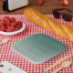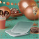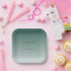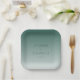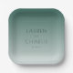 This wedding plate features a minimalist design with a gradient background transitioning from dark teal to light mint green, creating a serene and elegant atmosphere. The clean, sans-serif typography is centred in a balanced layout, emphasising the names "Lauren and Charlie" along with a date, all set against a calming colour palette of soft greens. Perfect for formal occasions, this design exudes sophistication and tranquillity, making it an ideal choice for weddings or significant celebrations where understated elegance is key.