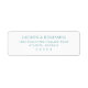 These return address labels feature a minimalist design with centered text on a clean white background, creating an elegant and sophisticated look. The soft teal blue color palette adds a calming touch, while the classic serif font enhances formality and timelessness. Perfect for formal occasions, these labels offer customizable fields for names and addresses, ensuring personalization without cluttering the simple, balanced layout. Their understated style makes them ideal for weddings or other special events where simplicity meets elegance.