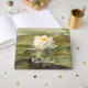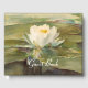 Peaceful, serene feeling from the water lily painting with greens and blues and a blooming white water lily. Edit the text if needed.