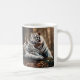 A gentle, elegant scene of two white tigers resting together in warm forest light. Soft tones, calm expression, and minimal composition create a peaceful, refined aesthetic suitable for home décor or gifts.