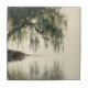 Ceramic Tile - Calming watercolor willow tree with soft green foliage and peaceful lake reflection. Ideal for nature lovers, mindfulness seekers, and those who love tranquil, relaxing scenery.