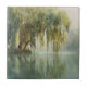 Ceramic Tile - Calming watercolor willow tree with soft green foliage and peaceful lake reflection. Ideal for nature lovers, mindfulness seekers, and those who love tranquil, relaxing scenery.