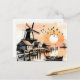 A tranquil coastal scene featuring a classic windmill beside rustic cottages along a quiet harbor at sunset. Warm orange hues wash across the sky as birds glide over the glowing sun, reflecting on calm waters dotted with small boats and wooden docks. Rendered in a sketch and watercolor-inspired style, this artwork evokes peaceful countryside charm and nostalgic seaside beauty.