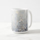 Start your day with calm elegance using this coffee mug featuring a serene abstract winter landscape. Delicate blossoms like tiny white bells and frosted ferns emerge from a soft gradient mist, painted in pale gray and cool white tones. Inspired by Japanese sumi-e artistry, the minimal, deliberate brushstrokes create an ethereal sense of calm and understated sophistication.