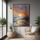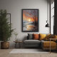 This stunning AI-generated artwork glossy poster print captures the calm and ethereal beauty of a winter sunset. The delicate blend of soft oranges and muted purples creates a mesmerising sky as the sun gently fades over a frosty, quiet landscape. With its bare trees silhouetted against the horizon and reflections dancing on the frozen ground, this piece evokes a peaceful, reflective atmosphere that is perfect for any room in your home. Its minimalist yet detailed nature makes it an ideal addition to modern, contemporary, or nature-themed decor. This artwork offers a unique and modern take on traditional nature landscapes. The subtle textures and cool tones make this piece stand out, providing an elegant and serene vibe to any space. Ideal for buyers who appreciate peaceful and calming decor, this wall art is perfect for relaxation spaces, bedrooms, or meditation rooms. It also makes an excellent gift for housewarmings, birthdays, or anyone who loves nature-inspired art.