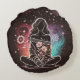 Serene Woman in a Cosmic Floral Dream Round Cushion