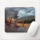 Photograph of a flowing creek with maple & oak leaves in the foreground, displayed on a quality Mousepad. The following words are displayed on the mousepad, "Serenity is ... autumn colour, babbling brooks, scents of forests, singing birds".