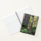 Spiral bound notebook with front and back cover that features the photo image of a green forest landscape with evergreen conifers. Front cover includes the inspirational words of the Serenity Prayer printed in white, stylised script. Select your notebook style options.