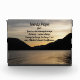 Acrylic photo block for display that features the landscape photo image of a dramatic lake sunset and mountain silhouettes along with the inspirational words of the Serenity Prayer. Makes a thoughtful gift for family and friends!