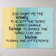 Serenity prayer quote poster on stripe design in shades of blue and tan motivational text wall art for interior deigns decor in home, office or dorm..