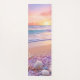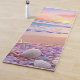 This high-quality yoga mat features a captivating beach scene at sunset, perfect for evoking a sense of calm and relaxation during yoga practice. The foreground is adorned with an array of delicate seashells and starfish scattered across the soft, pink-tinted sand. Gentle waves roll onto the shore, reflecting the warm hues of the setting sun, which casts a serene glow across the sky and ocean. The combination of soothing colours and natural elements makes this yoga mat an ideal choice for promoting peace and mindfulness in your practice
