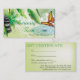 Contemporary Spa and Therapy gift certificate Business Card features a butterfly, hot rocks and bamboo leaves