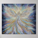 This fantasy poster features ethereal angel artwork with luminous wings and flowing lace gown set against a cosmic, star-filled background - celestial fantasy painting evoking serenity.