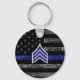 Sergeant Stripes Thin Blue Line Distressed Flag Key Ring