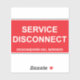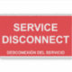 A SERVICE DISCONNECT sticker label with Spanish subtitles. Desconexión del servicio