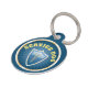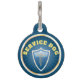 Service Dog tag with blue stripes, shield, and caduceus medical symbol.