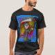 I give wanted to give this a 4 instead of a 5 because these Basic DARK T0shirts run unexpectedly SLIM or Narrow. Which is great if you do not have a potbelly, but I have a paunch. It isn't the shirt's fault that I've got a beer belly. The design and shirt itself is a quality cotton shirt. The color is more of a deep purple, but still a very pretty color. The Basic DARK T-shirts run a bit SLIMMER than the Basic Ts. The neck is a fraction narrower (or seems to be narrower) also. I'm a paunchy middle-aged woman and my neck is 12 inches (31cm) thick and the neckline fell about the same as in the photo of the man, and I had the desire to tug it a bit. So if you're a thick necked man or like loose shirts, be aware these are slimmer shirts. Once I get rid of my lockdown paunch it'll look great. The shirt washed well in cold water with no apparent bleeding. We don't have a dryer, so it hung dry. Did not shrink. Love the colors and the design. The design looks smaller on my shirt than it does on the model on-line. But still, it looks good on the shirt. The printing looks as it does on the model, just the size seems fractionally smaller. Washed garment in cold water, hung dry and design appeared unaffected.