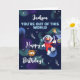 This card is great fun and good quality. I loved the humour inside and on the back. There is the opportunity to change the orientation of this card from landscape to portrait, which I did. It is relatively straightforward to amend the typeface to fit the new orientation. It was well packaged with no plastic. The printing on this card is excellent.