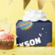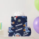 Fun personalised birthday celebration wrapping paper. Featuring pattern with Elmo & Dorothy in outer space. Personalise by adding your child's age, age and message.