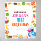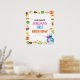 This colourful birthday sign features the Sesame Street foodie truck with Cookie Monster surrounded by cookies and cheerful decorations. The vibrant design captures the playful charm of Sesame Street, making it a perfect centerpiece for welcoming guests to a birthday celebration. Customisable for a personal touch, this sign adds a festive and whimsical element to your party decor.