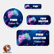 Coole wasserfeste Schulaufkleber für Kinder. Set mit 24 verschiedenen eckigen und runden Namensaufklebern, Motiv Spielecontroller.