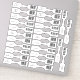Twenty-six UPC barcode inventory labels with custom text to create tags for 6 different products x 4 labels each (plus 2 extra) to make a total of 26 classic custom-cut barbell stickers, measuring 5/8 x 3-1/8 inches each. Wrap labels around jewellery, antiques, collectibles or any item from your inventory and fold the two halves together to get the product description on one side and UPC code on the other.