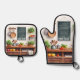 A set of two charming kitchen scenes on potholder and oven mitt, featuring cooking utensils, fresh vegetables, fragrant herbs, and a recipe chalkboard with space for a touch of personalisation. Optional personalisation to make it a great gift for the baker or chef you know. Option to purchase just one of the items at reduced costs as well if you don't need the set for both.