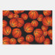 These fun wrapping paper sheets for basketball players or fans feature three individual, complementary designs -- sheet 1 features varied size basketballs on a customisable black background; the basketballs are selectively shaded for a unique 3D appearance - sheet 2 has simple white basketball shapes on customisable rust orange - sheet 3 has a simple mirrored pattern of basketballs on customisable black - by katz_d_zynes