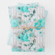 Set of 3 Coordinating Turquoise Floral and Stripes Wrapping Paper Sheet