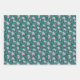 Set of 3 - Pink & Blue Floral on Teal – Modern Wrapping Paper Sheet