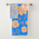 Set of 3 Retro Floral Pattern Bath Towel Set by Dreaming Cocoon. The mix and match of calm colours of bright blue, soft blue, and gentle orange colours, create a beautiful harmony. Vintage pattern orange colour flowers with the serenity colour shades, perfect gift for those who love flowers and romantic at heart!