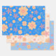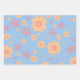 Set of 3 Retro Floral Pattern Wrapping Paper Sheets by Dreaming Cocoon. The mix and match of calm colours of bright blue, gentle orange and soft blue colours, create a beautiful harmony. Vintage pattern orange colour flowers with the serenity colour shades, perfect gift wraps for those who love flowers and romantic at heart!