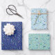Set of 3 coordinating sheets of Confetti design. 1 each of: dark blue, light blue, and aqua. Shiny illusion confetti with stars. Party time!