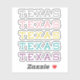 So nice, you want to say it more than twice! This pastel design shows the word "Texas" five times in five colours. Perfect for Texas residents and ex-pats who wish they still lived here. Matching products available. Stack them as I have them or use them separately. On the extra-small sheet, each "TEXAS" is approximately 2.25" wide.