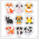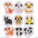 A playful grid of cute, cartoon dog stickers in multiple breeds. Bright, friendly characters ideal for kids crafts, school projects, and playful branding focusing on dogs, friendship, and joy.