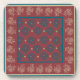 A set of six elegant, square, cork-backed coasters, with a formalised floral pattern in beige and dark blue on a rich burgundy background.