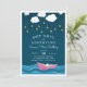 Charming nautical themed kids birthday party invitation features a night sky background with stars and clouds, and a pink paper boat sailing on the sea. "Set sail for adventure" appears above your party details in white lettering.